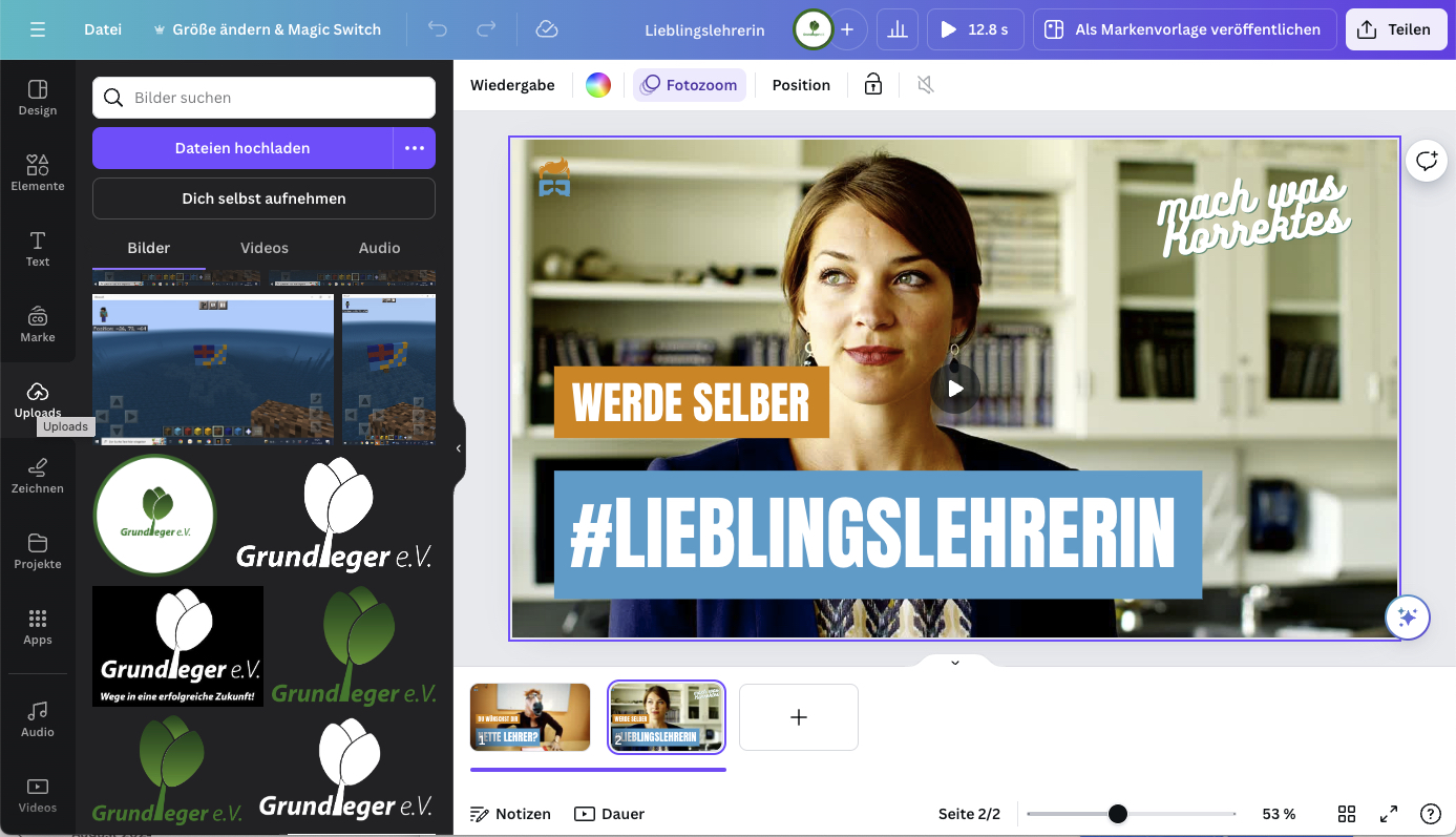 Mit der beliebten Plattform CANVA können Schüler professionelle Videos erstellen. Dies umfasst die Planung, Gestaltung und Bearbeitung von Videoinhalten, was ihre kreativen und technischen Fähigkeiten stärkt.
