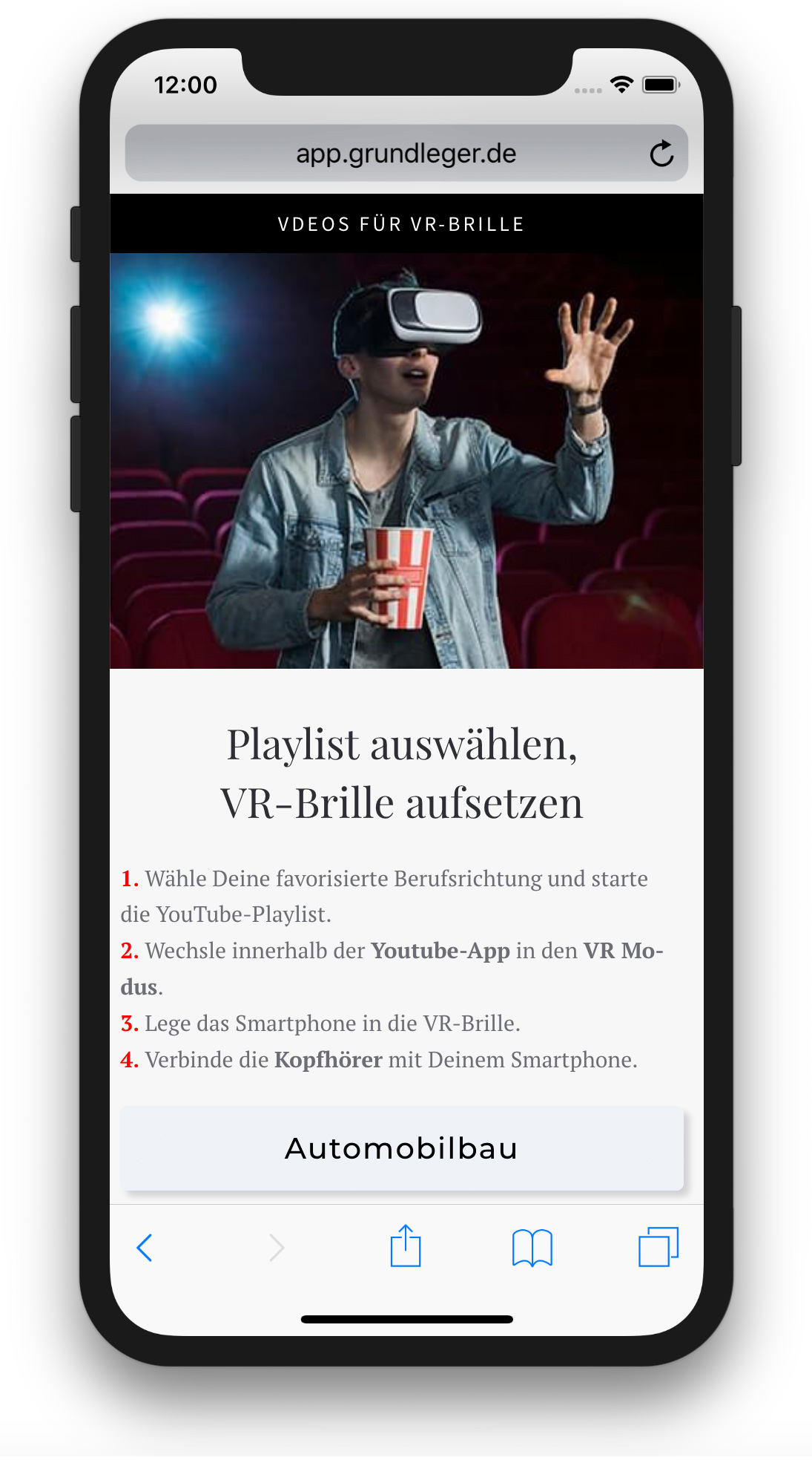 Wir organisieren für Sie Berufsorientierungsveranstaltungen an Schulen und forcieren die Nutzung unserer App, bevor die SuS unsere VR-Brillen mit Ihren 360°-Filmen aufsetzen.