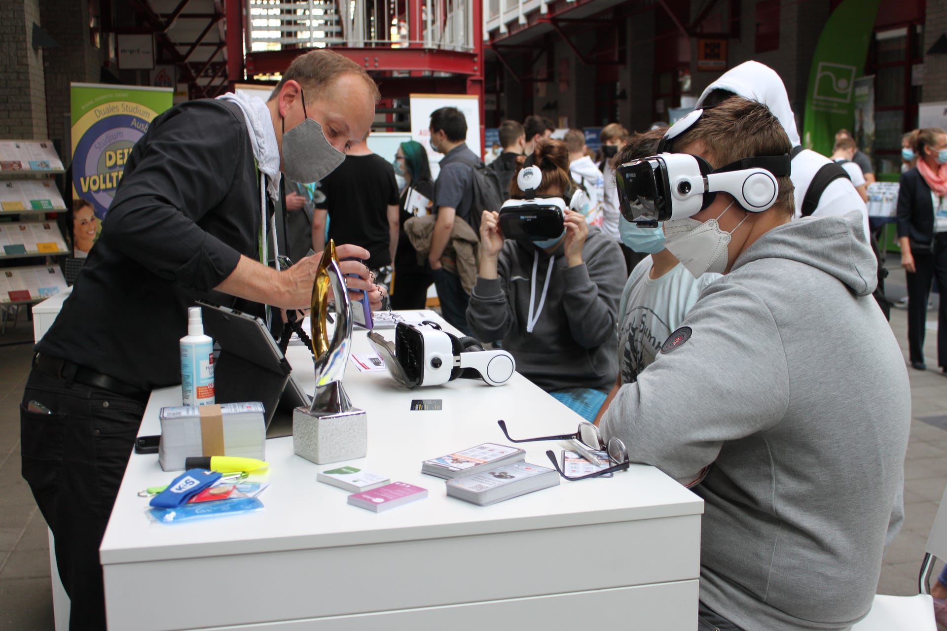 Mit einem Klassensatz Smartphone-VR-Brillen präsentierte Grundleger e.V. den SchülerInnen, LehrerInnen und Eltern, wie man sich heutzutage seine Ausbildung aussuchen kann.